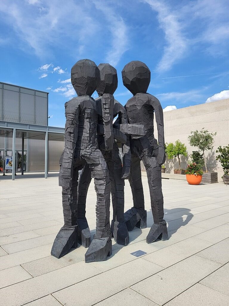 Georg Baselitz, Yellow Song, 2013, Bronze, patiniert, 306,5 x 146,5 x 109 cm, Sammlung Würth, Inv. 16917, und Georg Baselitz, BDM Gruppe, 2012, Bronze, patiniert, 366 x 242 x 149 cm, Sammlung Würth, Inv. 16001, Foto: Robert Schittko © Georg Baselitz 2022