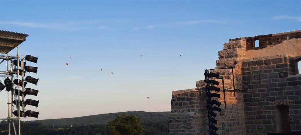Auch Tannhäuser und Wolfram sangen im letzten Akt in den vorderen Reihen des Publikums. Das war ein ganz besonderes Highlight des Abends. Ein nicht enden wollender Applaus der Besucher war der Dank für diese tolle Aufführung. Ein zusätzliches Schauspiel waren die über Heidenheim aufsteigenden Ballons bei untergehender Sonne.