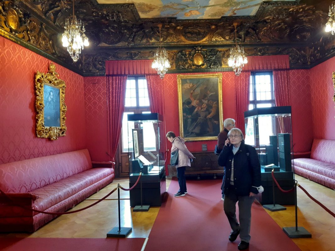 Anstelle einer geplanten Führung erhielten wir mit unserer Eintrittskarte ein Audio-Gerät, mit dessen Hilfe wir Informationen über das Gebäude selbst, alle Räume, Gegenstände und Gemälde abrufen konnten. Einige Teilnehmende fanden dies besser als eine Führung.