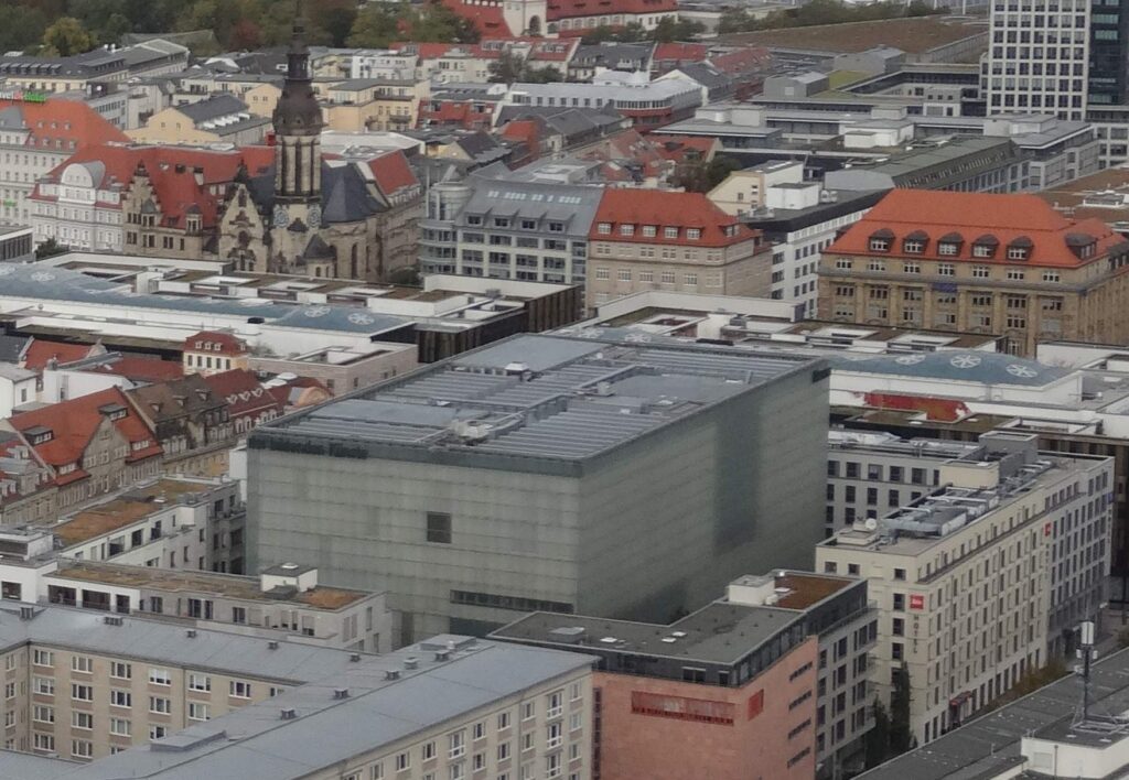 Am dritten Tag unserer Reise nach Leipzig besuchten wir den 2004 errichteten gläsernen Neubau des Museums für bildende Künste (MfbK) mitten in der Altstadt. Fast 61 Jahre nach Zerstörung des alten Städtischen Museums am zentralen Augustplatz wurde das MfbK auf dem ehemaligen Sachsenplatz errichtet, unweit vom Marktplatz.