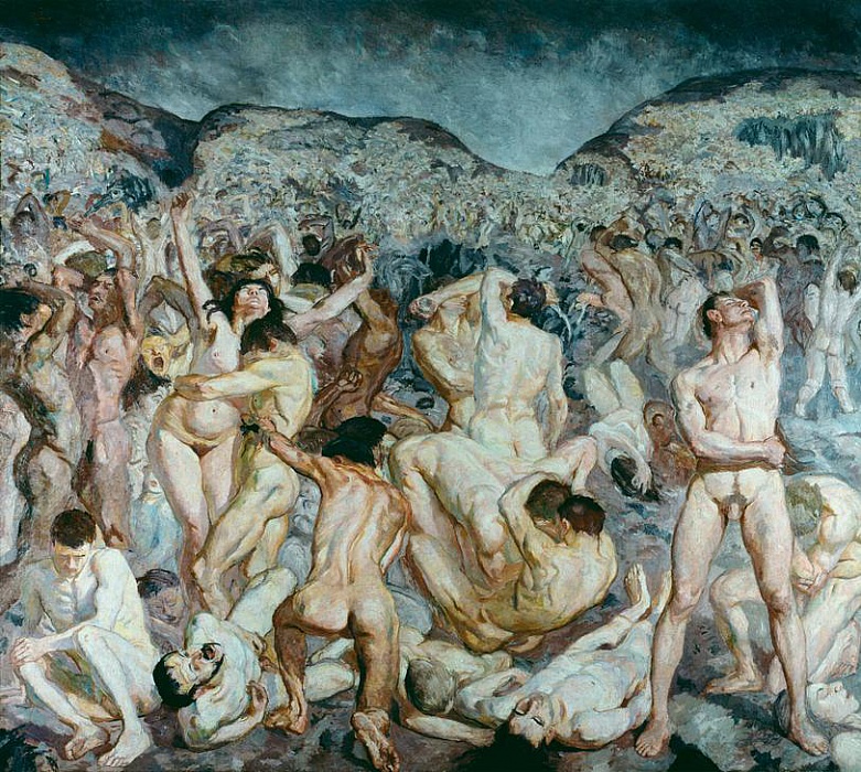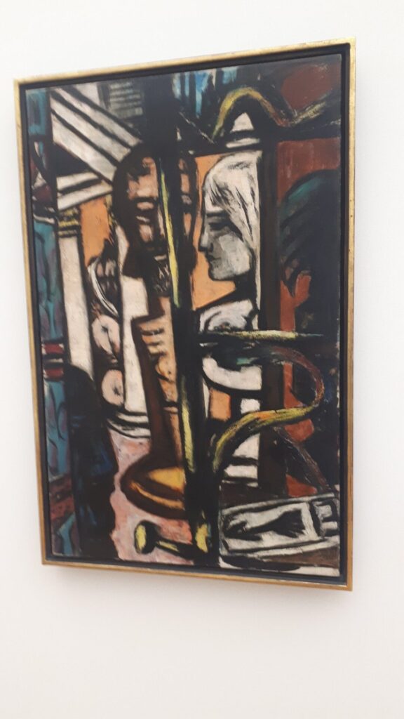 Zunächst standen wir überrascht vor einem frühen, riesigen Gemälde von Max Beckmann, das nur von nackten Menschen wimmelte – seiner Arbeit „Die Schlacht“ aus dem Jahre1907 .Keiner von uns hätte auf Max Beckmann getippt.