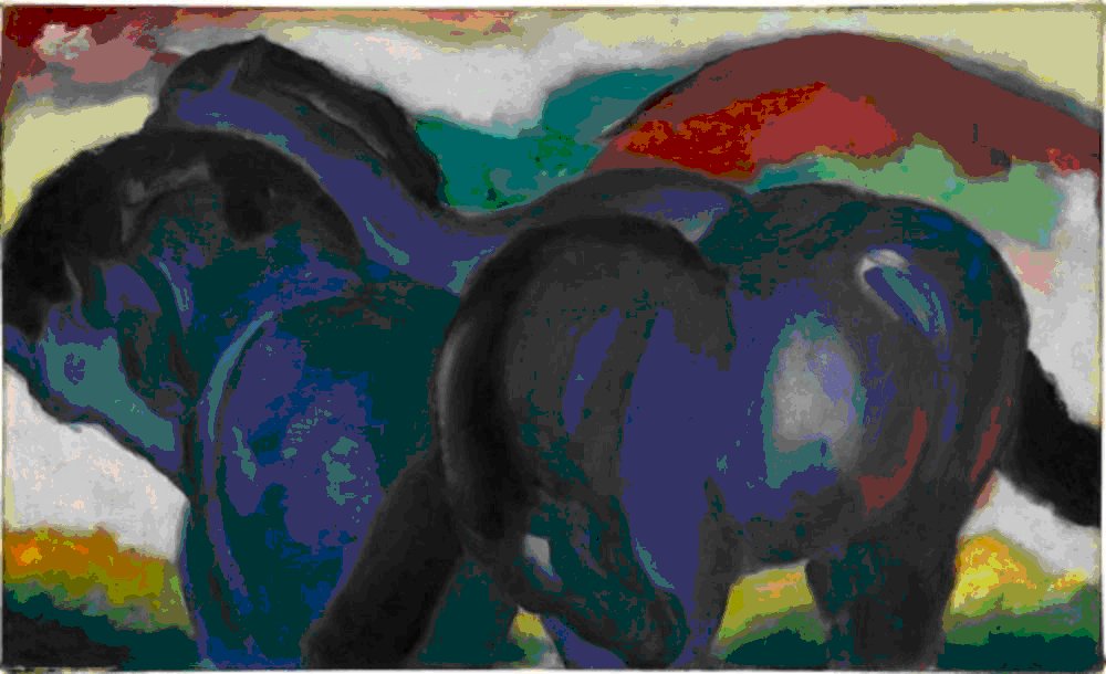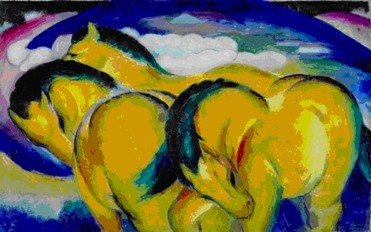 Danach kommen wir zu einem Raum mit zwei Bildern von Franz Marc (1880 – 1916), der im Ersten Weltkrieg eingezogen wurde und gleich im ersten Kriegsjahr gefallen ist.