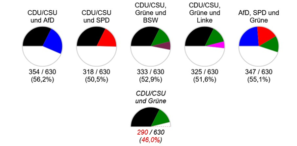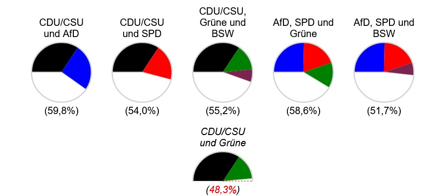Theoretische Koalitionsmöglichkeiten zum 15. Februar 2025