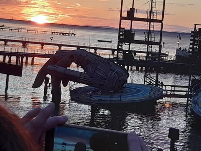 Wir alle waren von der Aufführung ungemein begeistert – nicht nur von den Weltklasse-Schauspielern und der phantastischen Musik der Wiener Symphoniker, sondern auch von den technischen Möglichkeiten auf der Seebühne.