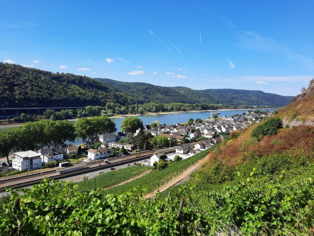 Am 1. Tag Fahrt mit Bahn und Taxen nach Neuwied, erste Pause in meinem Elternhaus, gelegen direkt am Beginn des Wanderwegs „Rheinsteig“ und heute bewohnt von meinem Bruder mit Frau, die sich bereit erklärt hatten, uns zu bewirten. Danach 1,5-stündige Wanderung entlang des Rheinsteig und Abstieg nach Leutesdorf. Übernachtung in der dortigen Jugendherberge mit einer Weinprobe.