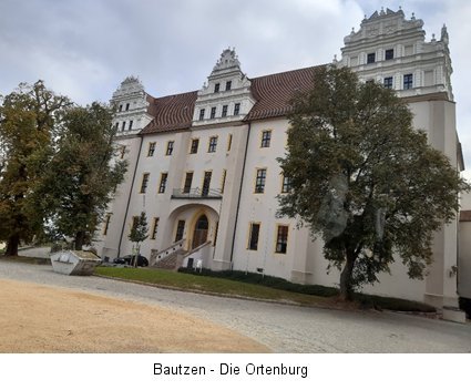 Wir fuhren vom Hauptmarkt (wo Rathaus und Tourist Info waren) zum Dom St. Petri, dessen Bauphasen uns erklärt wurden, danach ging es in die Altstadt, die Schlossstraße hinunter mit wunderschön renovierten Gebäuden, an einem Stadttor, dem Matthiasturm, vorbei entlang der Stadtmauer zur Ortenburg. Vom 12. – 17. Jahrhundert war die Ortenburg Sitz der Landvögte der Oberlausitz. Vom Ende des 17. bis ins 19. Jahrhundert hatte das Kursächsische Oberamt in der Burg seinen Sitz. Heute ist die Ortenburg Sitz des Sächsischen Oberverwaltungsgerichtes.