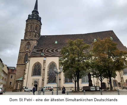 Wir besuchten auf dem nächsten Platz, dem Fleischmarkt, den Dom St. Petri, die älteste Simultankirche Deutschlands. Das war den meisten von uns während der Besichtigung nicht klar – nur einer einzigen Dame, die die Details am Kircheneingang gelesen hatte.