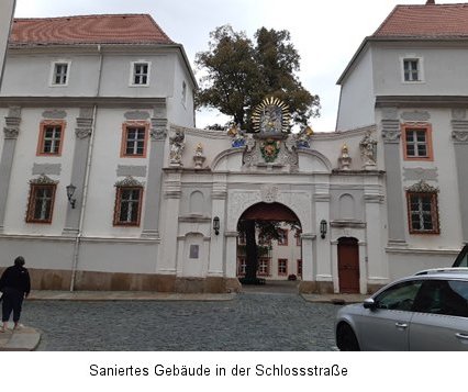 Nach dem Essen schauten wir uns noch einmal die schönen sanierten Häuser in der Schlossstraße an, durch die wir mit dem Bus gefahren warten, und die wir nicht richtig hatten sehen können.
