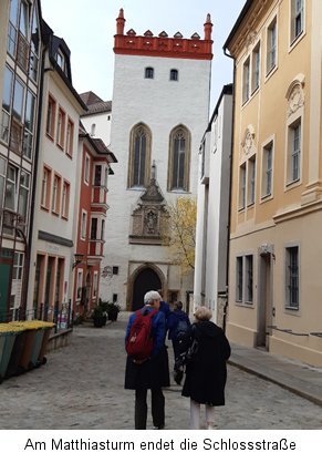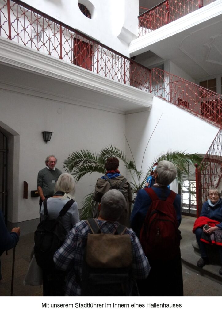 Ein Museumsführer erklärte uns sehr informativ und ausführlich die Geschichte der Fastentücher und ihre Bedeutung. Nach dem Dienstschluss des Führers um 17 Uhr erzählte uns eine Dame des Museums ausführlich über die Kirche zum Heiligen Kreuz, die eine ganz seltene Säulenbasilika ist. Es war eine Bereicherung. Anschließend machten wir noch einen kurzen Spaziergang zum Rathaus und über den Rathausplatz.