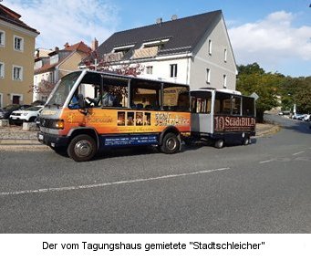 Nach einer Abschlussrunde mit Bewertung des Seminars und Vorschlägen für das nächste Jahr haben wir uns von den am Freitag zurückreisenden Teilnehmer*innen verabschiedet. Übrig blieb eine kleine Gruppe, die erst am Samstag die Heimreise antrat. Heiderose machte den Vorschlag, den Nachmittag mit einer Fahrt nach Zittau auszufüllen und hat uns eingeladen. Wir waren natürlich begeistert.