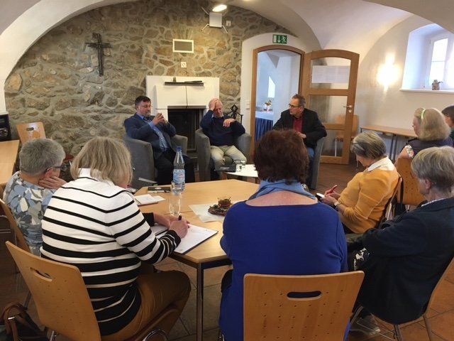 Abschließend trafen wir uns im kleinen Seminarraum im zweiten Stock zu einem gemütlichen Abschluss und Austausch des Nachmittages und auch der Tage, mit einem Dankeschön an Heiderose für den noch sehr schönen Abschieds–Ausflug, mit dem Bedürfnis auf ein Wiedersehen. Nach einem letzten gemeinsamen Frühstück am Samstagmorgen traten wir pünktlich mit Taxi zum Bahnhof oder Pkw die Heimreise an.